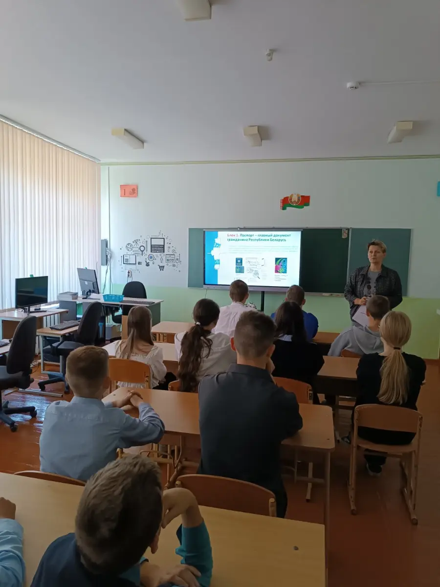В формате открытого диалога заместителя директора по основной деятельности Зелютковой Валентины Евгеньевны с учащимися состоялся разговор о паспорте, как о главном документе гражданина Республики Беларусь, личных качествах граждан и национальном характере белорусского народа. Акцент был сделан на понятие патриотизма, любви к родной земле, стремление к созидательному труду.